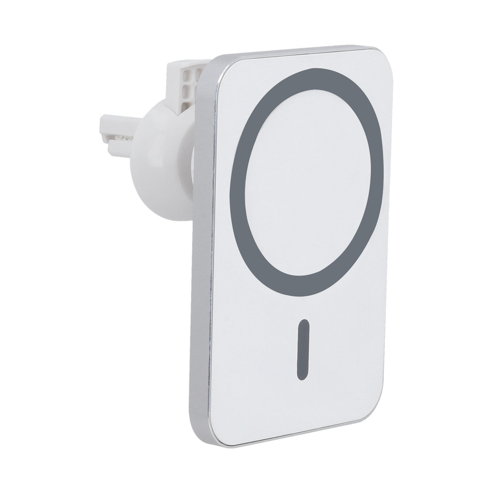 Wireless charger de smartphone para auto con clip ajustable de 360° y aro metálico. Incluye cable tipo C.