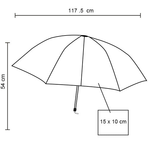 Paraguas de bolsillo con sistema de apertura y cierre automático, 8 gajos, broche de velcro, mango de plástico con asa e incluye funda.