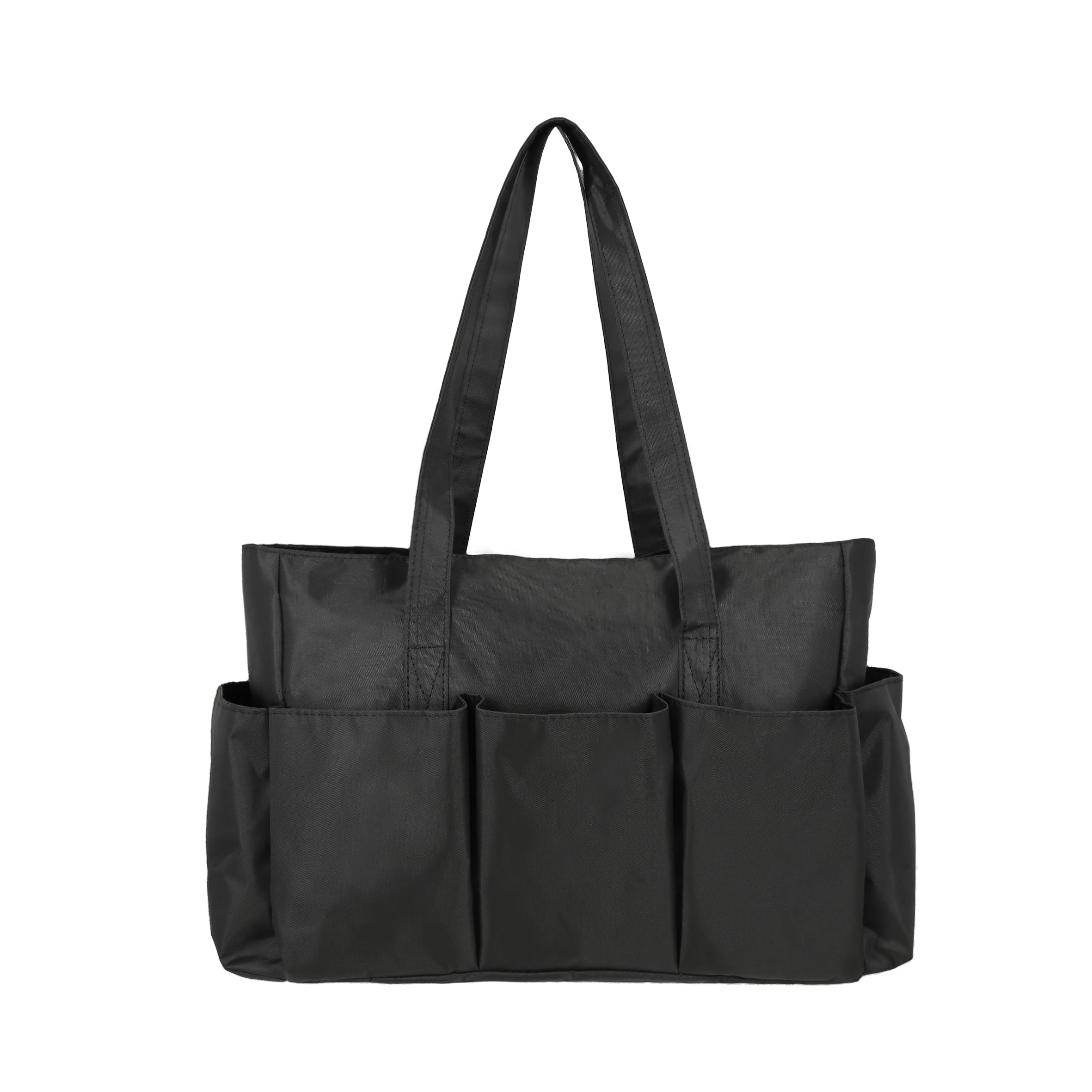 Bolsa con interior reforzado, dos asas y compartimento frontal.