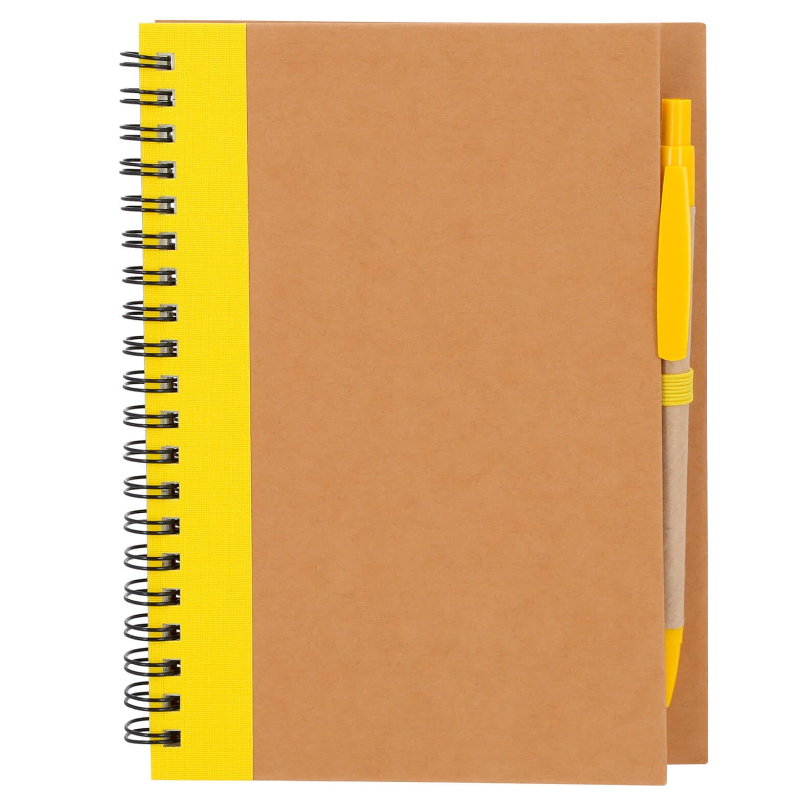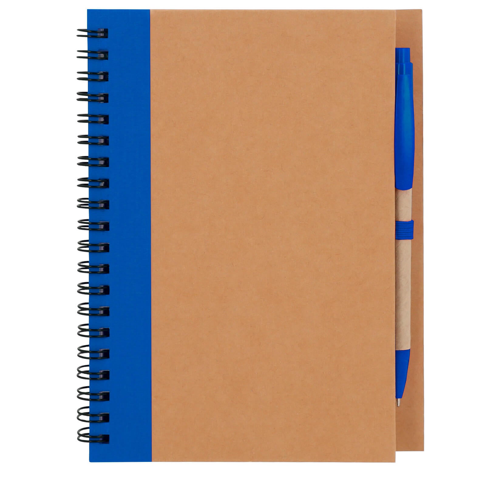 Libreta de papel reciclado con bolígrafo, incluye: 70 hojas rayadas.