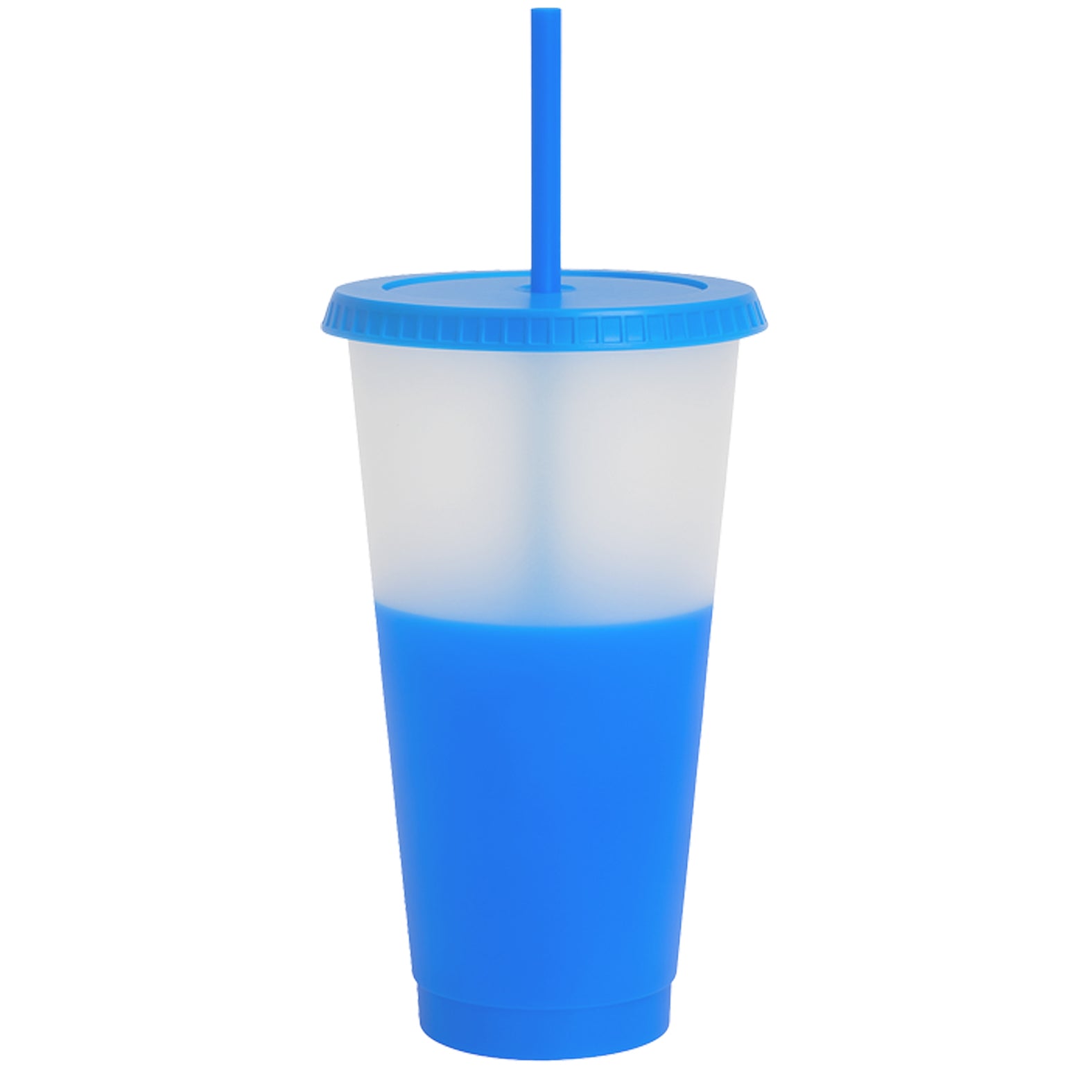 Vaso de plástico con acabado frost degradado y tapa solida. (Incluye popote).