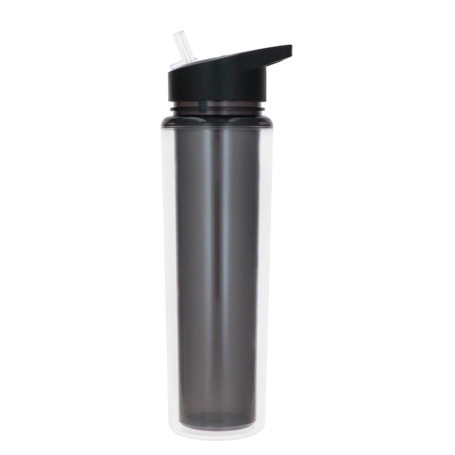 Cilindro de plástico de doble pared con popote y boquilla.